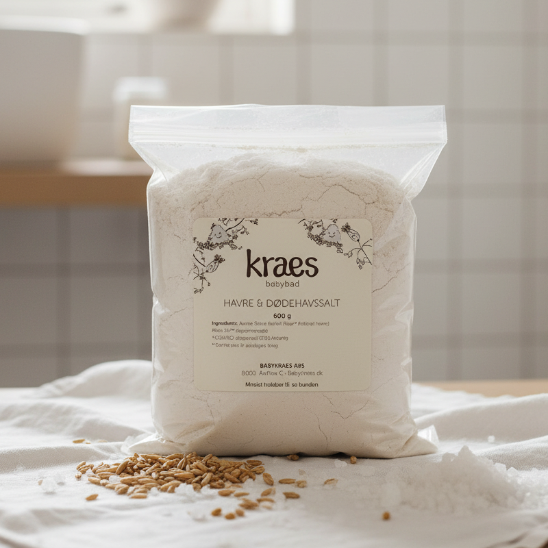 KRAES havre & dødehavssalt er et 100% naturligt, sæbefrit og dermatologisk testet babybad. Via vores ingredienser, havre og dødehavssalt, kombinerer vi det rensende og lindrende med beroligende egenskaber.