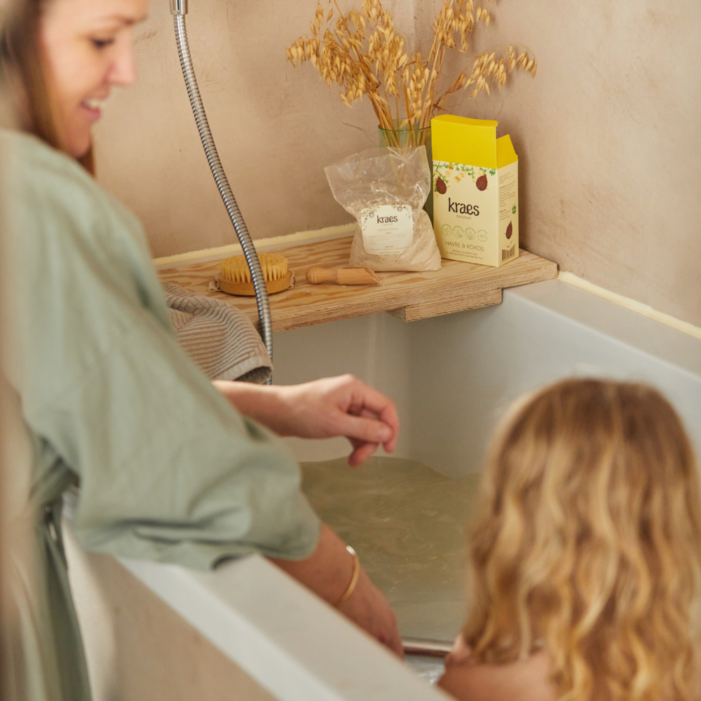 Den ældste fik, da han var 5 måneder, slem børneeksem og lægen fik desværre overbevist mig om hormoncreme for en periode. Jeg var nødt til at finde et alternativ og jeres havrebad, gjorde en del af forskellen, så jeg hurtigt kunne undlade at smøre den lille babykrop ind i skrappe medikamenter. Ligesiden har vi brugt jeres havrebad til ham, og de sidste tre uger, hvor vi løb tør begyndte de små ben at klø igen.